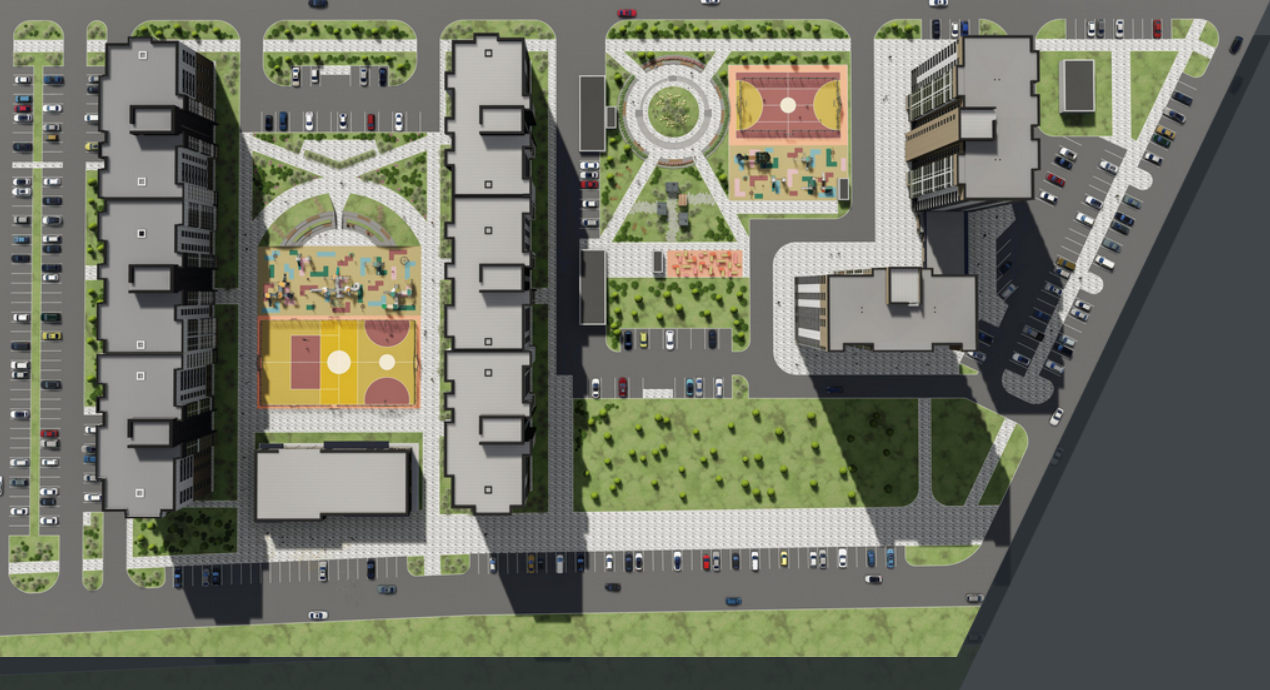 Во дворе есть несколько игровых площадок для детей разного возраста. Любители активного времяпровождения всегда могут собраться с соседями для игры в футбол и баскетбол на одной из специальных огороженных площадок.